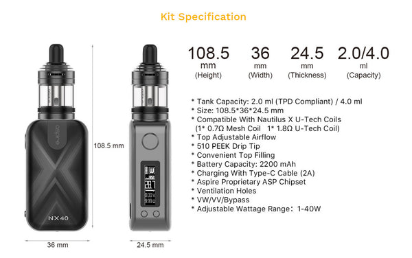 The Aspire Rover 2 takes compact vaping to a new level with it's fit in your hand size and legendary Nautilus vaping performance. The Rover 2 uses the new exciting NX40 mod, which boasts a huge 2200 mAh battery that delivers up to 40 watts of power. To complete the new Rover 2, Aspire took the legendary Nautilus XS and matched its performance to the NX40 mod.