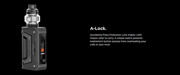 Geekvape L200 Classic 200W Kit, featuring a 5-200W output range, Z MAX Tank pairing, and utilizes dual 21700 batteries. Constructed from durable zinc-alloy, the chassis of the Geekvape L200 Classic...