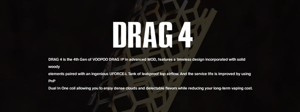 The Voopoo Drag 4 177W Starter Kit, Equipped with the GENE Chipset at the helm, the Drag 4 Kit can deliver up to 177W using two 18650 batteries to deliver substantial power to fire the UFORCE-L Tank. The UFORCE-L Tank features 4ml/5.5ml e-juice capacity and easy top filling system. Equipped with a temperature control suite, the VOOPOO Drag 4 is compatible with nickel, titanium, and stainless steel wires to tailor the vapor output. Calling upon the PnP Coil Series, the Drag 4 Kit is perfect for those that love versatility, thanks to the many offerings of the PnP Coil Series, catering to MTL or RDL vaping. By utilizing the new TC Mode, it can match the 4 heating materials like Ni200, Ti, SS316, SS430 more effectively and meets the specific need for DIY users.