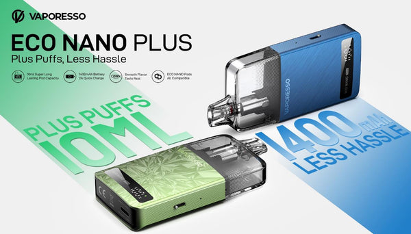 The Vaporesso Eco Nano Plus Pod System Kit delivers a perfect balance of endurance, simplicity, and performance. Featuring a massive 10ml refillable pod and a powerful 1400mAh built-in battery, it...