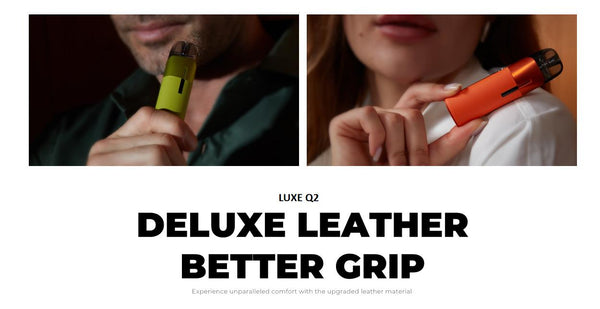 The Vaporesso LUXE Q2 features deluxe leather and adjustable airflow for premium vaping experience, Built-in 1000mAh Battery, hold 3ml ejuice capacity with the side filling syetem, 2A fast charging,full charged in 30mins and can use in nest 48hs vaping,fast charging reduces the waiting time for charging and greatly elevates the user experience.Fully compatible with all LUXE Q pods (2ml cartridge is top filling system), they cater to nic salt and freebase.