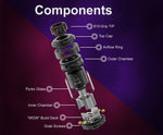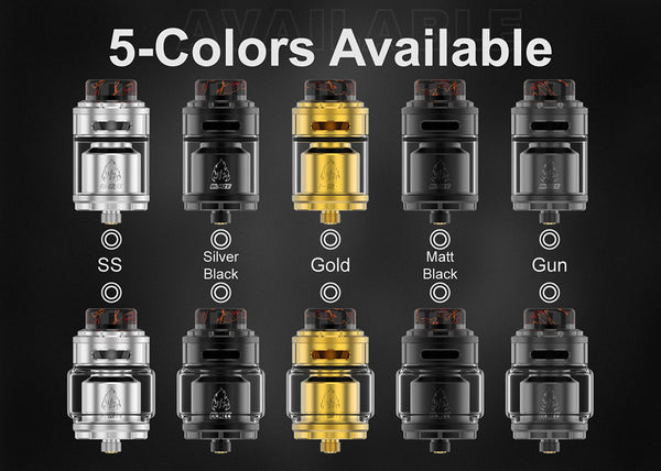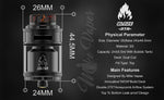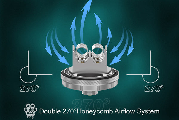 Thunderhead Creations Blaze RTA has a diameter of 26mm, offering a 2ml vape juice capacity and a 5.5ml bubble glass, coupled with its dual coil configuration and innovative "WOW" build deck, it facilitates a combo of vapor. The top-to-bottom leakage-proof deck works hand in hand with the dual 270 degree honeycomb airflow system to ventilate around the Clapton coil. Incorporating its adjustable airflow flow, the flavor raised and produces an intense cloud. Constructed from stainless steel, it accommodates a 2ml e-liquid capacity and is refillable via a top filling system.