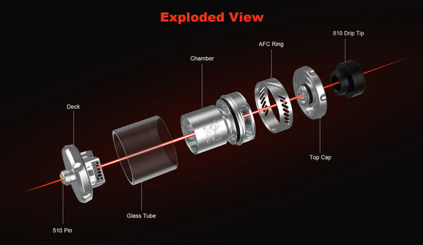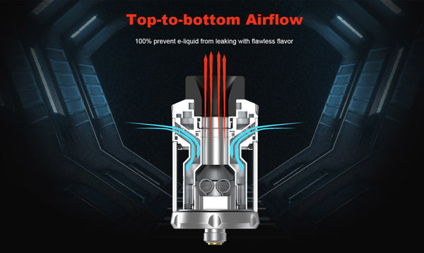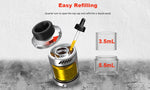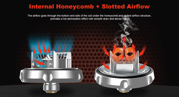 Hellvape Dead Rabbit 3 RTA features a diameter of 25mm. Finished with a postless deck for dual coil configuration, incorporating a 3.5ml vape juice capacity, you can also choose a bubble glass with its 5.5ml. It matches a flawless flavor and massive vapor when it comes to its top-to-bottom airflow, the top airflow is provided by two side slots and directly guides air down through its honeycomb. Opening the top cap, it supports the top filling system to resupply the e-juice.