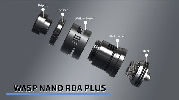 The WASP NANO RDA PLUS version . with its stylish colour scheme and optimised design 24mm diameter compact in size and easy to carry . The innovative dual coil building deck design greatly enhances the vaping experience.