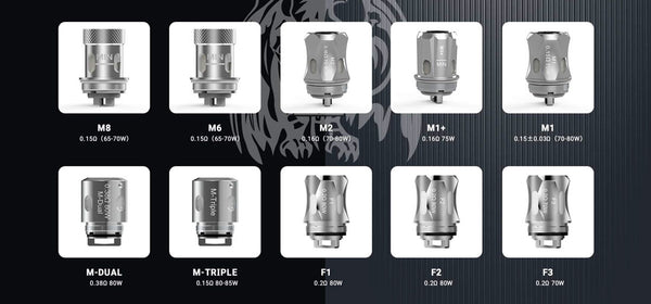 Resistance: M-Dual coil 0.38ohm, M1+ coil 0.16ohm
