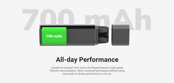 Innokin Klypse Kit allows you to navigate the MTL experience, the 2ml pod cartridge has an integrated 0.8ohm coil and features a side filling design. It has no adjustable airflow and captures a semi-restrictive MTL vape via its two fixed pinholes. Designing a 700mAh built-in battery, it has one hour of fully charged and gains a max 16W output. It optimizes a concealed LED light to check the battery level. The onboard chipset provides multiply safety protection. Constructed from aluminum alloy and decorated by a removable top dust cap, this kit seems most natural for easily carrying.