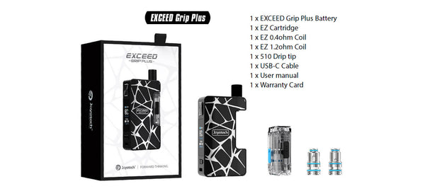 The Joyetech Exceed Grip Plus supports a maximum output of 80W with an external 18650 battery. The Joyetech Exceed Grip Plus adopts brand-new EZ Cartridge for amazing vaping experience. The...