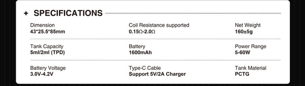 The Lost Vape Centaurus B60 AIO Kit, offering a 5-60W range, Quest 2.0 Chipset, and the UB Ultra Coil compatible UB AIO Pod for vapor output. Constructed from durable stainless...