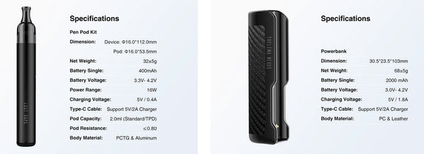 Pod dimensions: 16 * 112mm