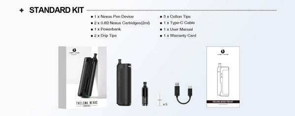 Thelema Nexus Pod has a 2.0ml cartridge capacity and is filled with liquid from the side. There is also a cartirdge with an integrated 0.8 ohm resistance coil, which guarantees an authentic and intense taste experience. The pod and battery connect securely and easily to each other magnetically using Plug & Play technology.