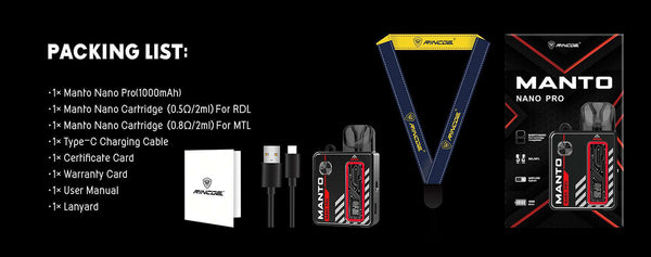 Rincoe Manto Nano Pro Pod System is a new line of Rincoe Manto series, equipped with a built-in 1000mAh rechargeable battery, 2ml vape juice capacity, an airflow switch and a...