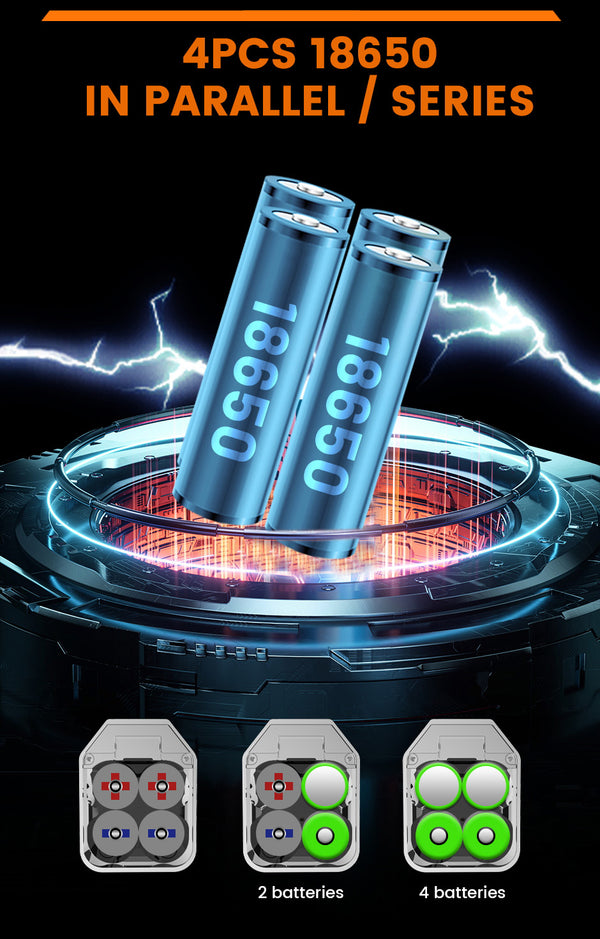 Battery Configuration: Quad 18650 Batteries - Not Included