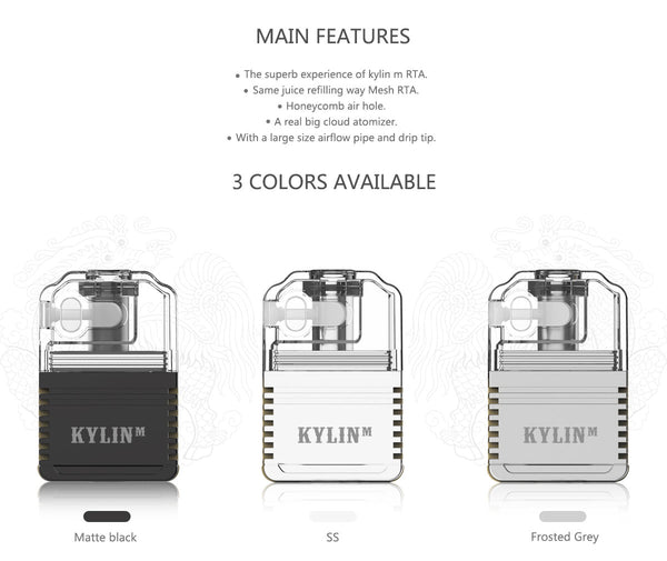 Vandy Vape Kylin M Tank is special design for BB Style Systems, Boro Devices, & the Pulse AIO Kit. This uses the Kylin M Mesh Coils. Features: 1. The superb...