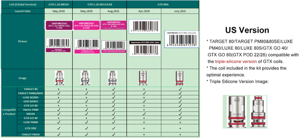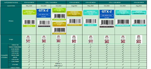 Please check the detailed GTX coil compatibility below before purchasing. These GTX Coils 0.2ohm & 0.3ohm are perfectly compatible with Vaporesso Target PM80 Device and are designed for even better...
