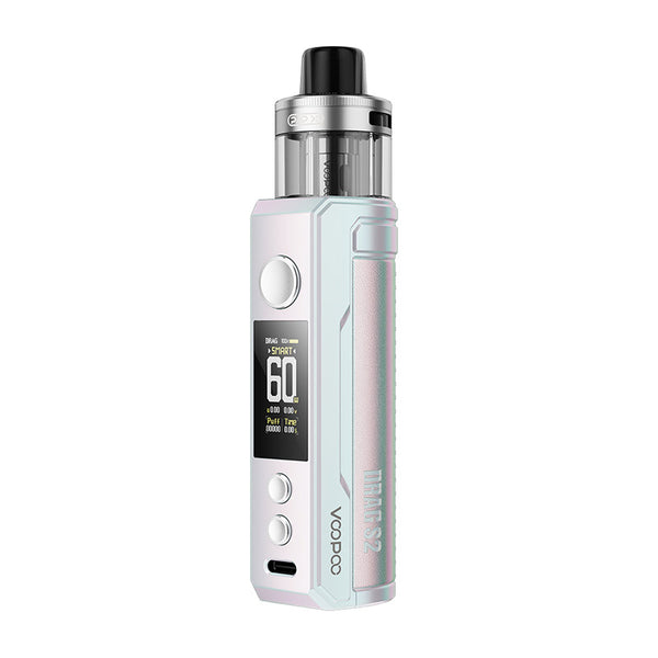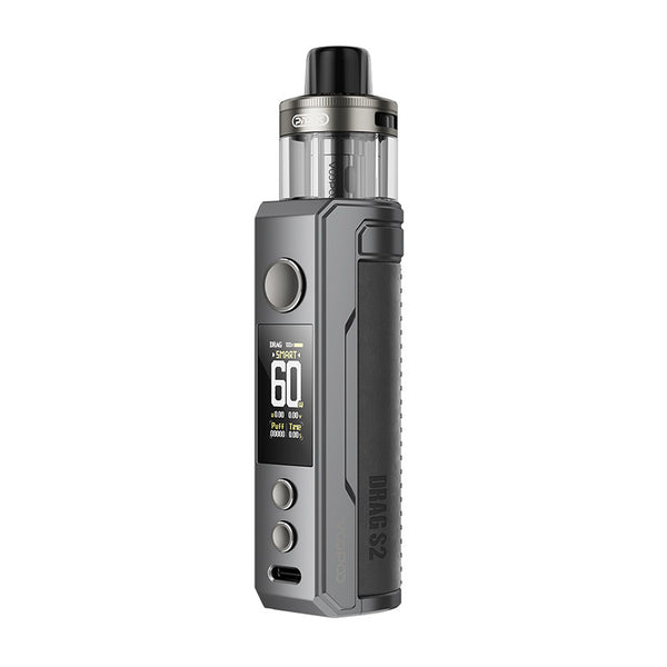Drag S2 Kit is packed with 2500mAh built-in battery and 5-60W power range. It is designed with the features of top airflow intake, 4-layer super leakage-proof, and PnP X coil tech. Constructed from durable zinc alloy, VOOPOO Drag S2 Kit comes with PnP X Cartridge that features 5ml capacity and side filling system. Outputting between 5-60W, the Drag S2 is perfect for those who love nicotine salts or freebase eJuice alike, unlocking the complex flavors and layers of your favorite eJuice. Capturing the attention of the taste buds the Drag S2 is pleasant to hold in hand thanks to the ergonomic nature of the device and utilizes a smart mode to match the wattage with the detected resistance of any installed coils.