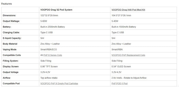 Re: Both DRAG S2 and DRAG X2 apply VOOPOO PnP X Platform. The main differences between them are as follows: